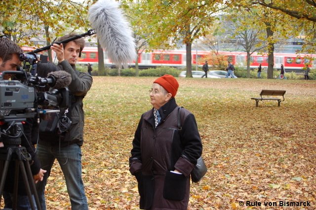 (3) Bei der Kundgebung auf dem Rathausmarkt wird Esther Bejarano (82), Auschwitz-Überlebende und Vorsitzende des Auschwitz-Komitees in der Bundesrepublik Deutschland e.V., über die Verantwortung der Reichsbahn sprechen.